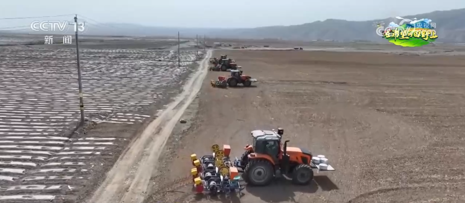 正在白银市平川区西格拉滩,这里的海拔正在1400米至1600米。因为地势高、天气寒凉,播种时间较晚。这几天,正在本地的高尺度农田里,多台搭载着斗极系统的播种机正正在功课,走一次就完成开沟、铺膜、播种、水肥管道铺设等工序。通过卫星定位,播种机能将播种误差节制正在2。5厘米以内,取保守的人工播种比拟,精准度提拔了80%以上,且播种效率也提高了3倍。